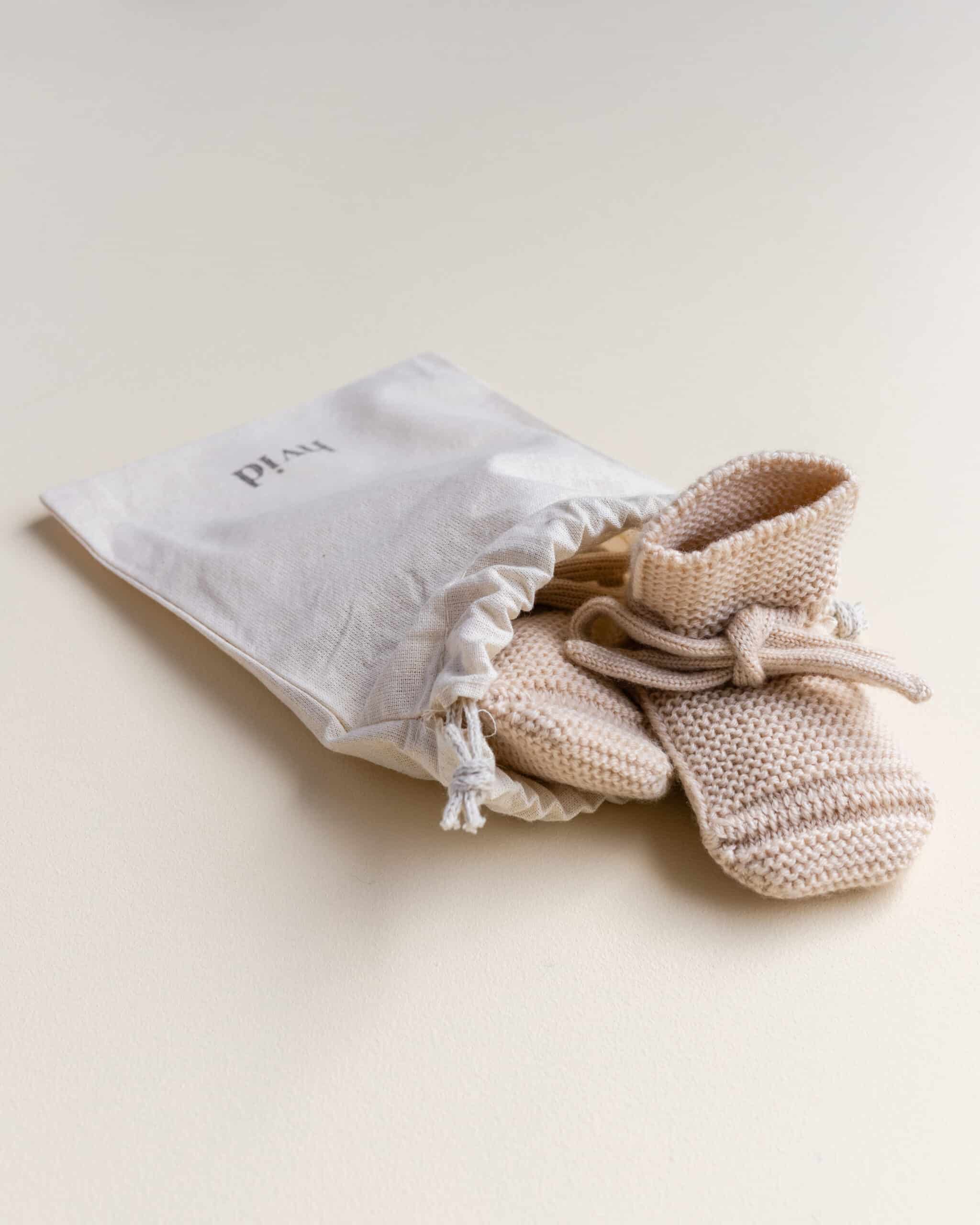 Deze gebreide baby sokjes bieden een perfecte pasvorm dankzij het unieke hielontwerp. Devastgenaaide veters zorgen ervoor dat ze stevig op debabyvoetjes blijven zitten en makkelijk aan tetrekken zijn. Gemaakt van merinowol, reguleren ze de temperatuur, zodat de voetjes het hele jaardoor aangenaam warm blijven. Verpakt in een katoenen zakje.
